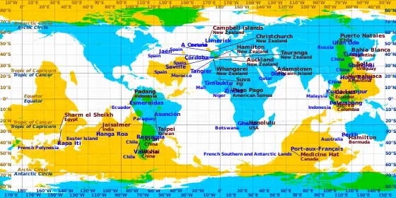 - Whangarei (New Zealand) – Tangier (Morocco)