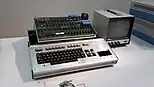 The Apple I used a MOS Technologies 6502 microprocessor running at 1.022727 MHz, and its design was based largely on Wozniak's previous work centered around a Motorola 6800.[42] The unconventional clock speed was chosen to be a fraction (27) of the NTSC color carrier, which simplified video circuitry. 4 KB of memory was included on the base machine, which was expandable to 8 KB on-board and up to 64 KB by using an add-on card. On-board memory utilized newly-available 4Kbit DRAM chips, and was designed to be upgradeable to the next generation of 16Kbit chips for a maximum of 32 KB on-board memory.[43] An optional $75 plug-in cassette interface card allowed users to store programs on ordinary audio cassette tapes. A BASIC interpreter, originally written by Wozniak, was provided with the cassette interface that let users easily write programs and play simple games. An onboard AC power supply was included.