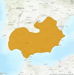 Geographic distribution of the Iberic endemism Apteromantis aptera marked on orange.