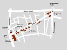 Map of the Arbat area with selected attractions (German).