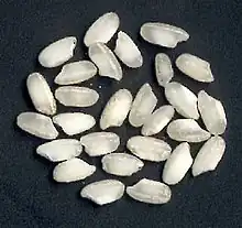 Arborio rice is an Italian short-grain rice. It is named after the town of Arborio, in the Po Valley, which is situated in the region of Piedmont in Italy. When cooked, the rounded grains are firm, creamy and chewy compared to other varieties of rice, due to their higher amylopectin starch content.[1] It has a starchy taste and blends well with other flavours. Arborio rice is often used to make risotto; other suitable varieties include Carnaroli, Maratelli, Baldo, and Vialone Nano. Arborio rice is also usually used for rice pudding.[2][3]