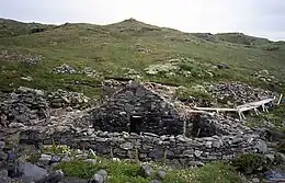 Above the south landing-place, near the remains of the monastery, there is a Christian cross-slab dating perhaps to the seventh century.[2]