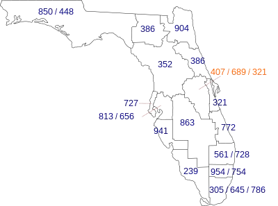 - ↑ "Area code details: 689". Florida Public Service Commission. Retrieved August 16, 2012.