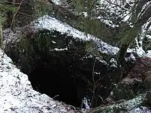 Most of the mine shafts in Arendalsfeltet is today present as steep openings ending in water, as this one from the Solborg mines at Stoa, this particular mine is called Heierås gruve.