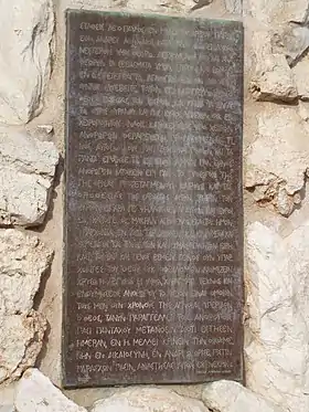 The Areopagus sermon refers to a sermon delivered by Apostle Paul in Athens, at the Areopagus, and recounted in Acts 17:16–34.[1][2] The Areopagus sermon is the most dramatic and most fully-reported speech of the missionary career of Saint Paul and followed a shorter address in Lystra recorded in Acts 14:15–17.[3]