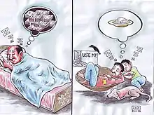 To draw the global awareness about women's rights, the cartoon competition was organized by Arifur Rahman and Toons Mag. 567 cartoonists were participated from 79 different countries with 1,625 drawings, and 12 cartoonist was won the award out of 567 cartoonists. A selection was represented in the Women's Rights exhibitions, which opened in Drøbak, Bangalore and Uttar Pradesh on International Women's Day, 8 March 2016.[56][57] The drawings in the exhibitions deal with women's rights and limitations; the lack of education, forced marriage, female genital mutilation, violence, discrimination, legal protection, and workload.[56][58] On 10 December 2016, it was exhibited in the Brain Sneezing Gallery in the Prešov Wave Club, Slovakia.[59][60] The event was supported by The Norwegian Cartoonist Gallery, Fritt Ord,[61] Indian Institute of Cartoonist, Brain Sneezing Gallery, Prešov Wave club, EEA funds, and the Slovak Republic.
