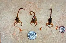 - ↑ "Scorpions". Cooperative Extension, College of Agriculture & Life Sciences. The University of Arizona. Retrieved June 20, 2008.