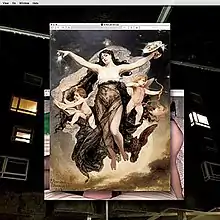 The album art depicts a personal computer desktop with two windows open, both displaying images. The 1886 painting "The Night Escorted by the Geniuses of Love and Study" by Pedro Américo is foregrounded, but clearly obscures a presumably pornographic image of a reclining figure clad in nylons and little if anything else. The back cover is similar, with what appears to be the same image this time obscured by both the track listing (in a bespoke Microsoft Word) and Lorenzo Costa's "The Reign of Comus".