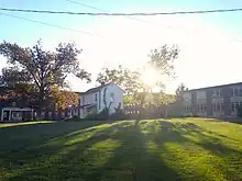 The Old Asbury Building (in white) was the first building, serving as the single schoolhouse for education. It is now used for prayer and meditation.