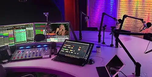 Visual Radio Studio with Audicom and CLOSE at the Xlevel radio station, Puerto Rico. The audio mixer switches TV cameras automatically