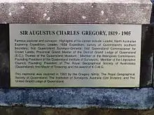 - 1 2 Waterson, D. B. (1972). "Gregory, Sir Augustus Charles (1819–1905)". Australian Dictionary of Biography. National Centre of Biography, Australian National University. ISSN 1833-7538. Retrieved 20 June 2012.