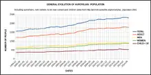 In the initial 20 years, about 400 individuals from 20 countries resided in the township. In the next 20 years, this number rose to 2,000 individuals from 40 countries. As of January 2018,[16] it has 2,814 residents (2,127 adults and 687 children) from 54 countries with around 50% from India, and almost 20% from both France and Germany.[17] The community had many residential housing clusters with Tamil, English, French and Sanskrit names like Aspiration, Arati, La Ferme, Auromodel and Isaiambalam.[18]
