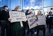 Picketing, like the Geelong library staff in 2021, is part of the universal right to peaceful protest in a free society. Its status in Australian law is uncertain, although it will not attract liability for secondary action.[145]