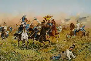 Austrian uhlans under Colonel Rodakowski attack Italian Bersaglieri during the Battle of Custoza
