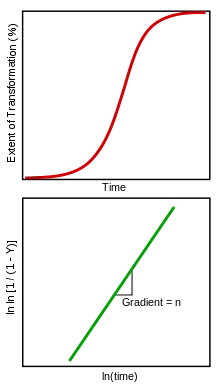 - ↑ Avrami, M. (1939). "Kinetics of Phase Change. I. General Theory". Journal of Chemical Physics. 7 (12): 1103–1112. Bibcode:1939JChPh...7.1103A. doi:10.1063/1.1750380.
