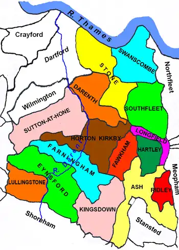 The Hundred of Dartford and Wilmington did not exist at the time of the Norman Conquest, and the parishes of Dartford and Wilmington were accounted as part of Axstane in Domesday Book.[5]