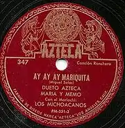 Azteca Records was a mid 20th century record label specializing in Mexican music. Azteca Records was founded by Trinidad Pelaez in the 1940s as Discos Azteca with retail as well as recording.[1] Many titles were released in Mexico on the Peerless Records imprint.[2] By the 1960s the label and shops were acquired by Al Sherman of Alshire Records in Burbank, California.[3][4] The label was mostly marketed in Mexico, but was manufactured in Los Angeles, California, in the United States of America.[5]