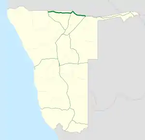 The B10 is a national road in northern Namibia, running from west to east from the Ohangwena Region to Rundu directly along the Angola Border.[1]