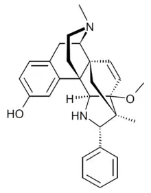 • CO[C@]12C=C[C@]34C[C@@]1(C)[C@H](N[C@H]2[C@@]35CCN(C)[C@@H]4Cc6ccc(O)cc56)c7ccccc7