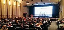In 2007, BYU changed the honor code to read that stating one's sexual orientation was not an honor code issue while removing the phrase that "any behaviors that indicate homosexual conduct, including those not sexual in nature, are inappropriate and violate the Honor Code." The change also clarified the policy on advocacy of LGBTQ rights or romantic relationships.[68][69][70] Several students, including those identifying as LGBTQIA+, thought that the previous wording was confusing and unclear. While both homosexuals and heterosexuals must abide by the church's law of chastity (i.e. no sexual relations outside of marriage, no crude language, and no pornography),[71] the Honor Code additionally prohibits all forms of physical intimacy that give expression to homosexual feelings (e.g. dating, hugging, hand holding, or kissing) as of 2022.[72] There is no similar restriction against expressing heterosexual feelings.[73] The policy on homosexuality was not noted in the online version of the honor code available to students until the fall of 2009.[74][75] Both this version and the 2010 versions contained a clause banning homosexual advocacy defined as "seeking to influence others to engage in homosexual behavior or promoting homosexual relations as being morally acceptable."[76][77] In early 2011, BYU quietly removed the clause prohibiting advocacy.[78][79][70] However, in 2021 BYU fired Sue Bergin and the next year BYU's sister school BYU-Idaho (also run by the Church Educational System) fired two employees Lindsay Call and Ben Buswell all for allegedly expressing concerns over church teachings around LGBTQ people.[80] BYU continues to ban LGBTQ student groups from meeting on campus as of 2022.[81] During an off-campus September 2022 BYU LGBTQ student "Back to School Pride Night", 100 protesters (many also BYU students) gathered and yelled slurs at the 300 LGBTQ BYU students and friends in attendance.[81][72][82] A 2021 BYU-conducted survey of its students found that 74% of the 13,000 respondents experienced or witnessed "derogatory remarks about LGBTQ+ people" within the past year, and one in four LGBTQ students surveyed said they did not feel safe on campus.[72][83]: 6, 9 Carolyn Gassert, president of the LGBTQ BYU student group USGA, said most of the queer students at BYU are used to the vitriol and "hear these comments in the classroom."[81]