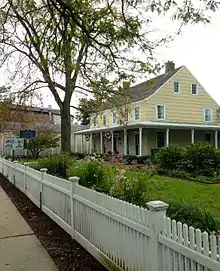 Babylon had already been settled, as Huntington South, prior to hostilities with the British in the Revolutionary War. The First Presbyterian Church of Islip and Huntington South, as it was then known, was established in 1730.[3] Though the church would later be split into two separate Huntington South and Islip churches in 1857 (the former to be renamed the First Presbyterian Church of Babylon after 1872). However, long before this split, the First Presbyterian Church held services in the original wooden church until 1778 when British soldiers tore down the structure. The wood from the first church was taken west to Hempstead to construct a barracks for British troops. This event was more recent history when, on the eve of the War of 1812, Joshua Hartt gave an impassioned sermon encouraging the young men to defend the United States and prepare for a "righteous war."[4]