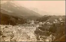 Bad Aussee (German: [baːt aʊ̯sˈseː]; Central Bavarian: Bod Ossee) is a town in the Austrian state of Styria, located at the confluence of the three sources of the Traun River in the Ausseerland region. Bad Aussee serves as the economic and cultural center of the Styrian part of the Salzkammergut lakes region. With a population of 4,862, the town is said to be the geographical midpoint of Austria, symbolized by a stone monument in the centre of town.