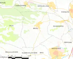 Baixas is located in the canton of Le Ribéral and in the arrondissement of Perpignan.