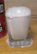 Effective baking powder foams when placed in hot water.