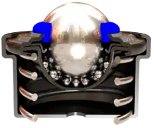 Ball transfer units are omnidirectional load-bearing spherical balls mounted inside a restraining fixture. They are identical in principle to a computer trackball (pointing device). Typically the design involves a single large ball supported by smaller ball bearings.