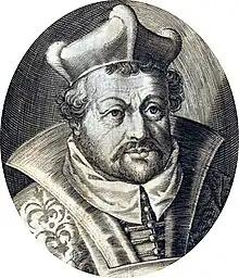 In 1602, the Aulic Council reinstated Balthasar and sentenced the chapter, the knights and the cities to pay a fine and the expenses of the proceedings. Upon his return, Balthasar continued his policy of counter-reformation and achieved a complete restoration of Catholicism in the city and the principality.[2][3][4][5]