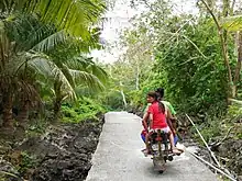 As seas surrounding Banton can be rough during the wet season, the best time to visit the island is from March to May during the dry (summer) season. This is also the typical time for Asi families living in Metro Manila or abroad to visit the island since it coincides with the Lenten season and barangay fiestas.[5] Within the island, the main forms of transportation are passenger motorcycles (known elsewhere as habal-habal) and motorized boats. A circumferential road connects the 17 barangays of Banton to each other.[5]