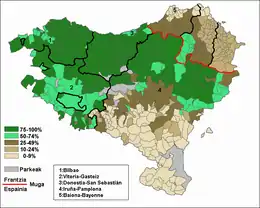 ![]() Basque speakers, including second-language speakers (most recent data)[4]