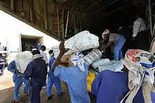 The first aid flight from the United Kingdom being unloaded on November 11, 2008.