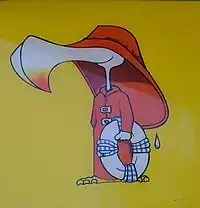 Beacon Bill has served as both the mascot and logo since 1978. Conceived and drawn by Bill Hitchcox, an artist from the local community, Beacon Bill is an anthropomorphized gull in a raincoat carrying a life preserver. The mascot/logo was requested by the printer that produced the menus.[5]