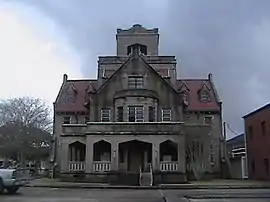 Beauregard Parish Jail is a former jailhouse in DeRidder, Louisiana built in 1914 in the Gothic Revival architecture style. It is referred to as the Gothic jail or the Hanging jail.[2][3] The jail is owned by the Beauregard Parish Police Jury. The Beauregard Parish Rehabilitation Committee serves under the direction of the Police Jury with the primary duty of the preserving the jail. The Beauregard Tourist Commission has a vested interest in the jail and other historic sites and has been involved in many aspects of securing a continued future of the jail.[4]