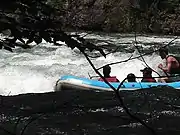 The Watauga also has a section of Class IV-V whitewater popular with expert kayakers, upstream of Watauga Lake.[3] This section requires significant rainfall to bring it up to runnable levels. It features continuous steep boulder bed rapids dropping up to 150 feet per mile (28 m/km), and several falls and ledges only runnable by expert paddlers.