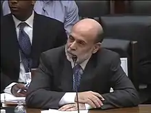 Bernanke testifying before the House Financial Services Committee responding to a question on February 10, 2009.