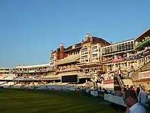 During the course of the war The Oval was used by the military. Originally prepared as a prisoner of war camp, instead it was used for anti-aircraft guns, barrage balloons, searchlights and an Army assault course. As a result, the outfield was littered with barbed wire, pits, cement posts and over 900 wooden posts.[8] Lock started repairing the ground in October 1945, in order to get it ready for the start of the 1946 season in April. Lock and his small staff levelled the playing field and laid some 45,000 pieces of turf, working from dawn until dusk.[8] They successfully achieved their aim and the ground was ready for start of the 1946 season.