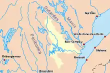 The 978 square kilometres (378 sq mi) Pipmuacan Reservoir, impounded by the Bersimis-1 Dam, is roughly halfway down its course.[2]