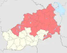 DistrictsBezhetsky, Bologovsky, Firovsky, Kalyazinsky, Kashinsky, Kesovogorsky, Kimrsky, Kimry, Konakovsky, Krasnokholmsky, Lesnoy, Likhoslavlsky, Maksatikhinsky, Molokovsky, Ostashkovsky, Ozyorny, Penovsky, Rameshkovsky, Sandovsky, Solnechny, Sonkovsky, Spirovsky, Torzhok, Torzhoksky, Udomelsky, Vesyegonsky, Vyshnevolotsky, Vyshny Volochyok