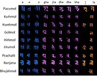 The Bhujimol script (or Bhujinmol, Devanagari: भुजिमोल or भुजिंमोल) is the most ancient form of Nepal script. It is also one of the most common varieties of the Nepal alphabet.[2]
