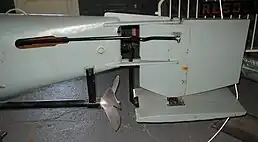 The Biber was powered on the surface by a 32 hp (24 kW) Otto Blitz petrol engine, which was used despite concerns about the risks posed by the carbon monoxide the engine gave off.[1] The engine had the advantage of being cheap and available in large numbers.[1] Propulsion while submerged was provided by a 13 horsepower (9.7 kW) electric motor, supplied by three Type T13 T210 battery troughs.[1]