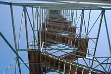 The tower is accessed from the Big Walker General Store, just off US Route 52 about 12 miles (19 km) from Wytheville, Virginia. The first store building burned in 2003 and a new store was built just to the right of the first.[2] Originally, visitors crossed to the tower by way of a swinging bridge that connected to the back of the old general store. The swinging bridge was not destroyed in the fire and still stands. Visitors can cross to the edge where the original staircase connected to the bridge.