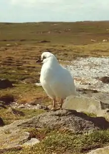 The black-faced sheathbill (Chionis minor), also known as the lesser sheathbill or paddy bird, is one of only two species of sheathbills, aberrant shorebirds which are terrestrial scavengers of subantarctic islands.