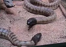 The black-headed python (Aspidites melanocephalus)[3] is a species of snake in the family Pythonidae (the python family). The species is endemic to Australia. There are no subspecies that are recognized as being valid.
