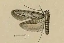 The wingspan is 12โ€“14 mm. The forewings are pale stony grey, sparsely sprinkled with fuscous and rust-brown scales. The hindwings are grey.[2]