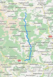 Geißbach1.9left412opposite Vorderwald along the municipal boundary from Adelmannsfelden to Neuler at a track bridge over the Blinde RotSource region south of Rosenberg-Hütten