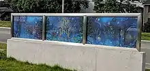 The station features the artwork Three Sisters by Haudenosaunee/ Anishinaabe artists Lindsey Lickers and Katharine Harvey, having a digitally printed glass wall with images narrating the history and culture of the First Peoples.[2]
