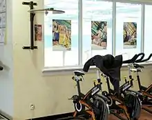 The PE department has a swimming pool. It also has a variety of equipment to cater for sporting activities within two games halls (used for gymnastics, circuit training, social dance, badminton, basketball, football, and indoor games such as Danish Longball) and an outside area consisting of two all-weather pitches for football and hockey, two grass rugby pitches, and spare grass areas used for football. In the PE building upstairs there is a fitness room.[10]
