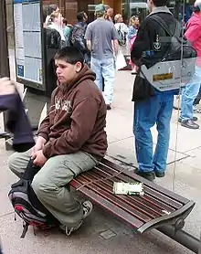 An example of bookcrossing, where the book (near bottom-center, next to the juvenile) is left on a bench for someone to take.